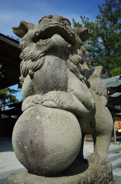 あれは「なにごともうまく転がす」という意味があるんだって。他の神社では球だけじゃなくて小さな狛犬が傍らにある。(子宝、子の安泰を願う)、球がなんと砲弾になっているのもあるんだって。