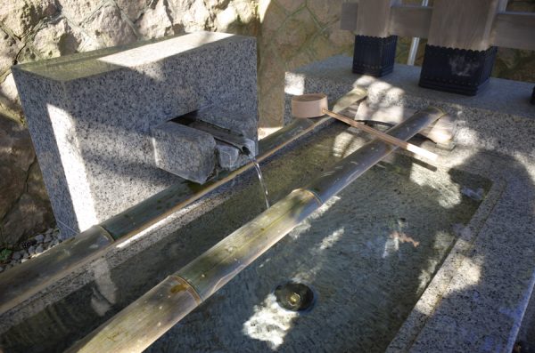 上り坂です。その途中の右側に手水場あり。正面参道側にもあります(古い分だけ良さげな感じ)。
