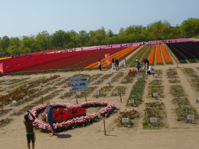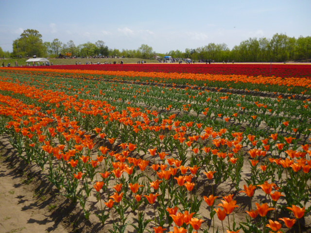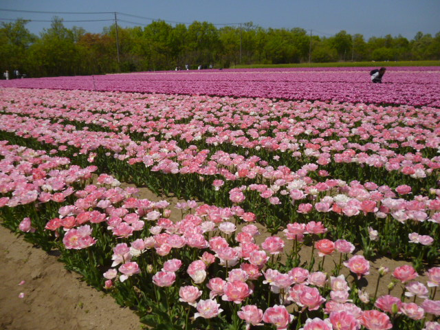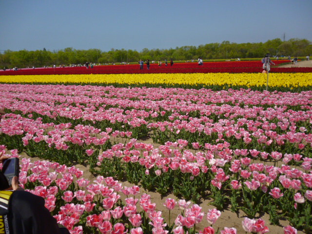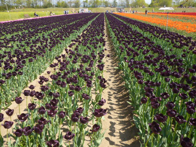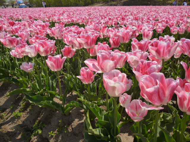約60種類、80万本ものチューリップが2ヘクタールの畑に広がっています。奥の方には菜の花畑もありました。(写真撮り忘れ・・・)