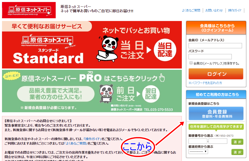 そんなこんなで原信のファンになり「そうだ、原信のネットスーパーを利用しよう」と思い立ちました。