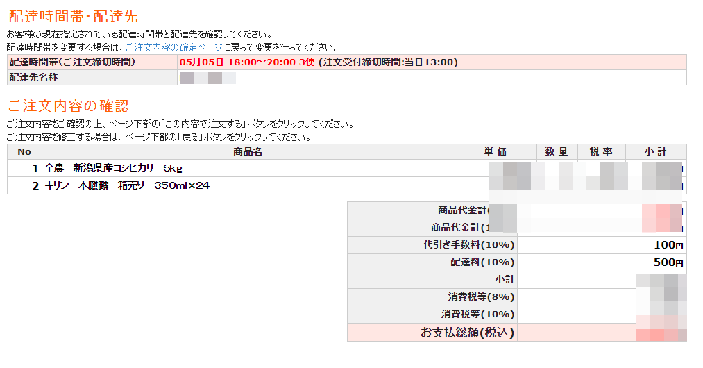 私が発注したその日のうちの配送は、すでに予約がいっぱいで締め切りになっていました。