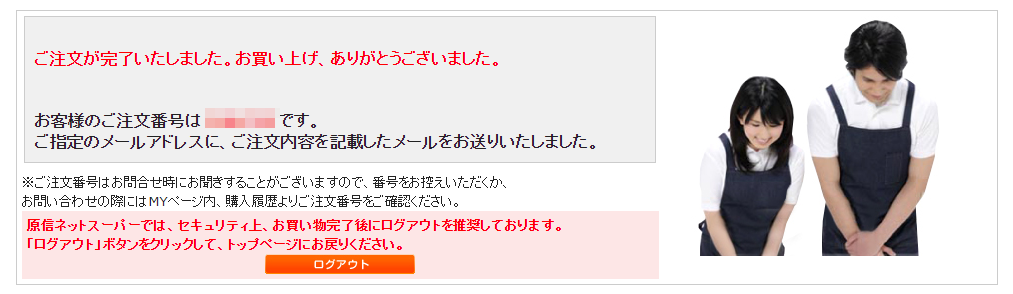 最後に「この内容で注文する」をクリックすると注文番号が画面に出てきます。