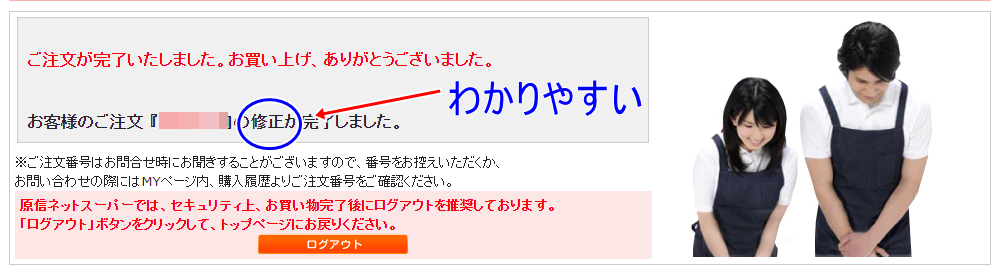 「注文番号◯◯修正しました」という、この「修正」という言葉がありがたい。