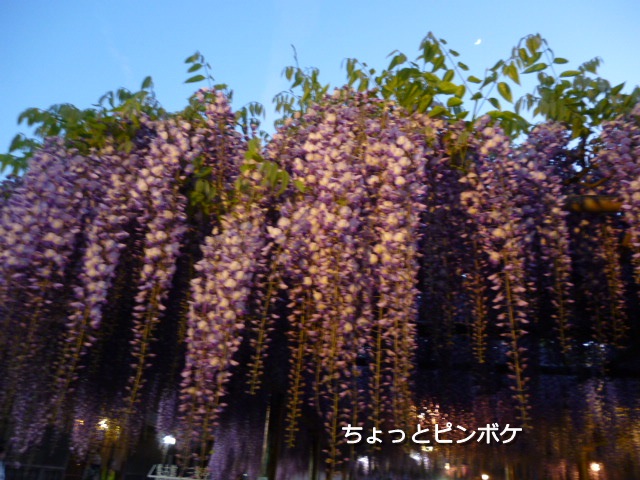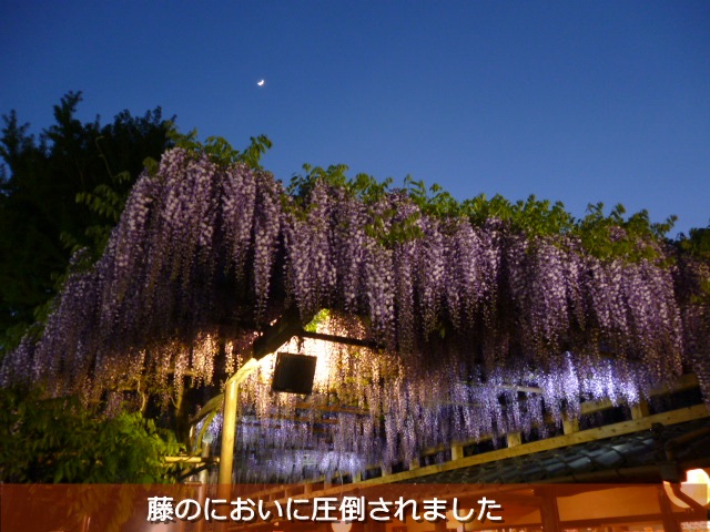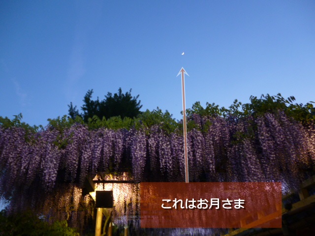 田んぼの中なので、この日は三日月だったのに月の明かりが藤を照らすようでした。