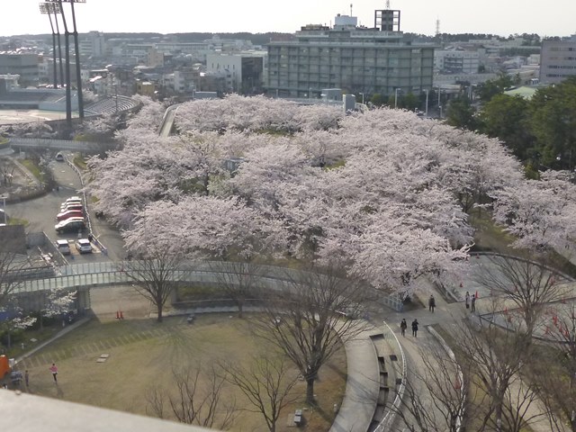 その後に屋上に行き、白山から陸上競技場までの咲いている桜を楽しみました。