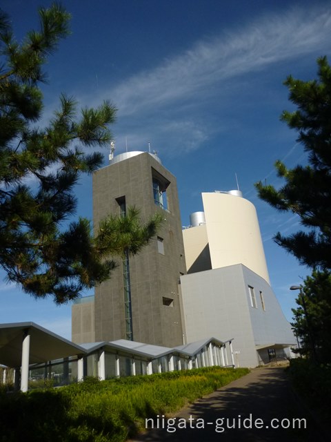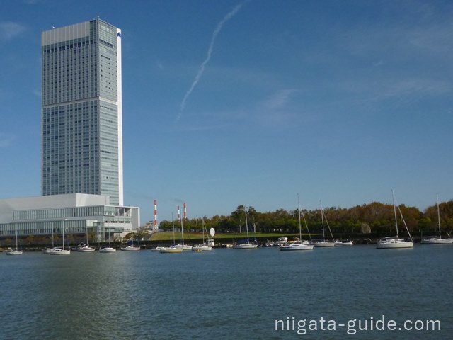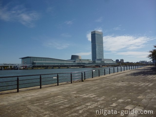 実際に朱鷺メッセの中に入ってしまうと大きさを感じられませんが、対岸から見ると、こんなに立派な建物なんですね。