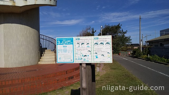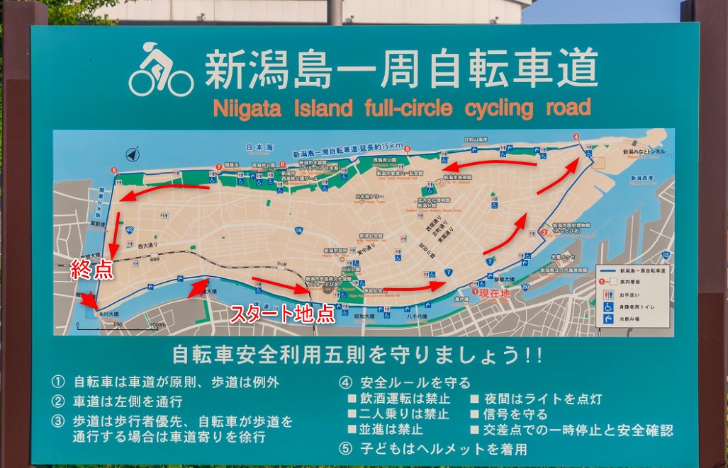この看板は、萬代橋近くのぐるりん新潟島コースに建っているものです。