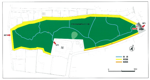 ↑ パンフレットの地図で見ると一番東側にある東門から入りました。ここは管理棟があり、パンフレットが置いてあります。