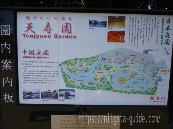 入り口や、庭園のなかに、園内の案内図があります。全体の位置や、自分の位置がわかります。