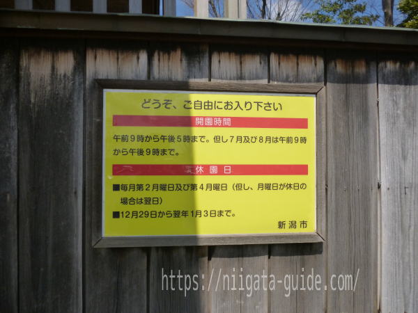 開園時間:庭園・休憩所 午前9時から午後5時まで(7・8月は午後9時まで)